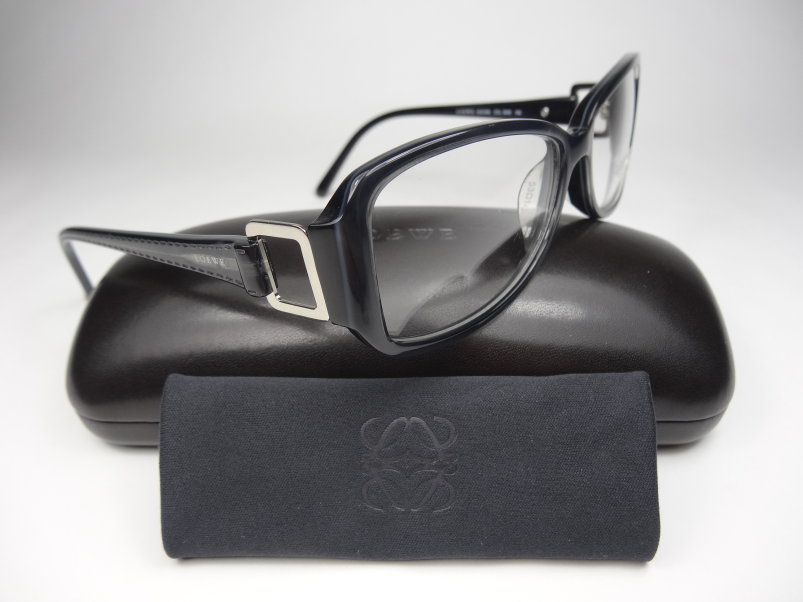 全新真品 LOEWE 光學眼鏡, 太樺公司貨, 義大利製 金屬鏤空膠框, 兩邊鏡架上都有 LOEWE字樣.