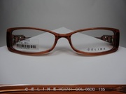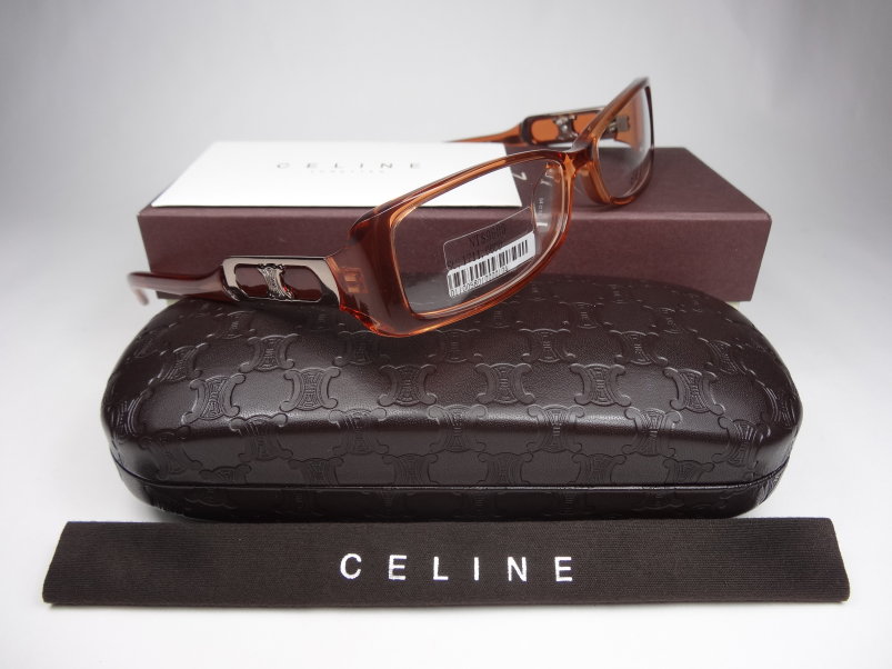 全新真品 CELINE 光學眼鏡, 太樺公司貨, 義大利製 琥珀色膠框, 可配高度數, 兩邊鏡架上有其特有的圖騰logo.
