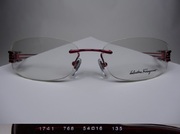 全新真品 Salvatore Ferragamo 費洛加蒙 光學眼鏡, 義大利製 金屬無框, 1741, 兩邊鏡架上都有它專屬的logo, 鏡腳有 Salvatore Ferragamo 字樣.
