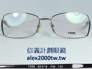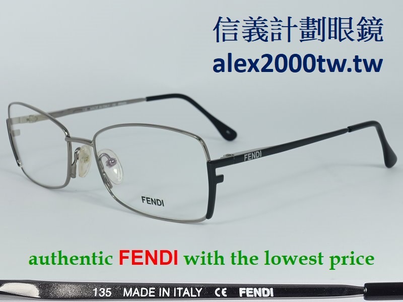全新真品 FENDI 光學眼鏡, F959 義大利製 公司貨, 金屬框 兩邊鏡架上都有雙F的logo和Fendi字樣