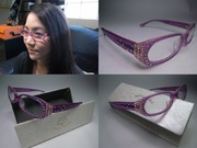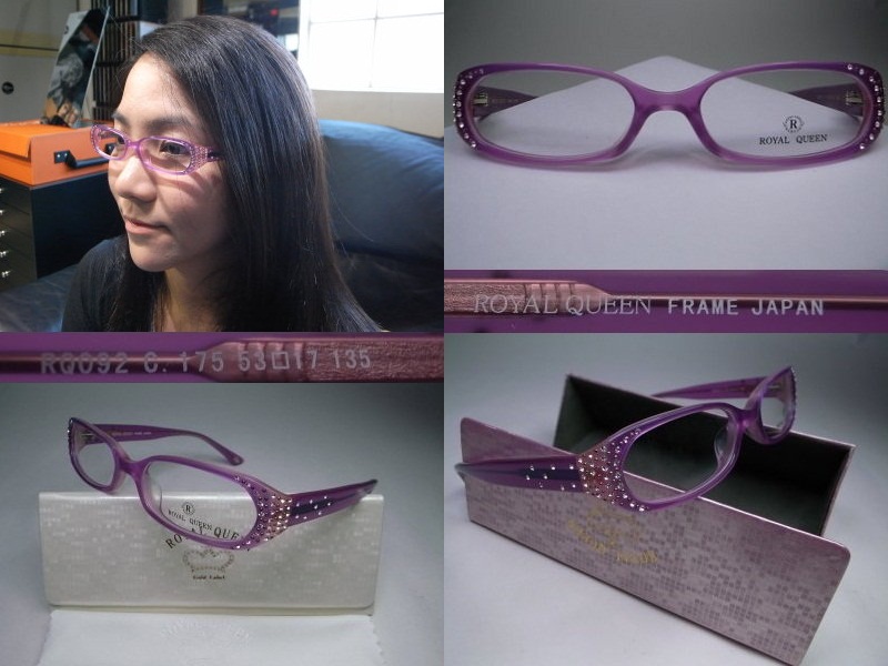 全新真品 ROYAL QUEEN 光學眼鏡, RQ092, 水鑽 粉紫色 橢圓 膠框, 可配高度數小框