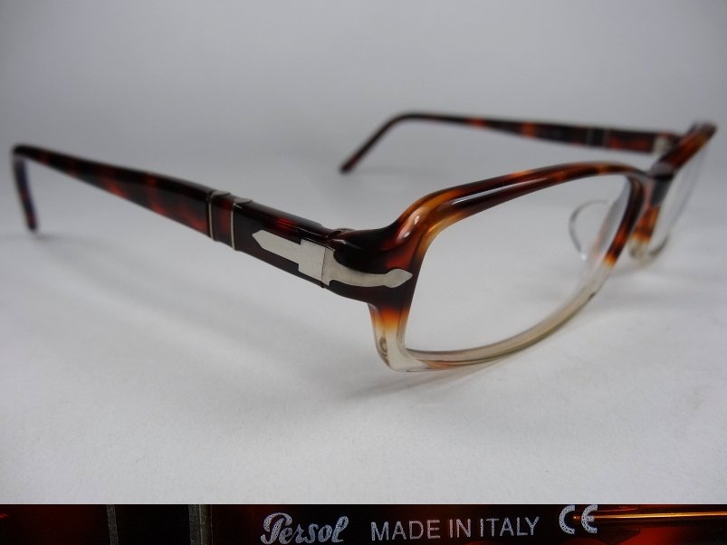 全新真品 Persol 光學眼鏡, 義大利製 方框膠框 亞洲版有鼻墊, 鏡架有二條橫紋專利彈簧.