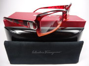 全新真品 Salvatore Ferragamo 費洛加蒙 光學眼鏡, 2597 義大利製 雙色漸層膠框金屬襯飾, 兩邊鏡架轉軸上都有Ferragamo字樣.
