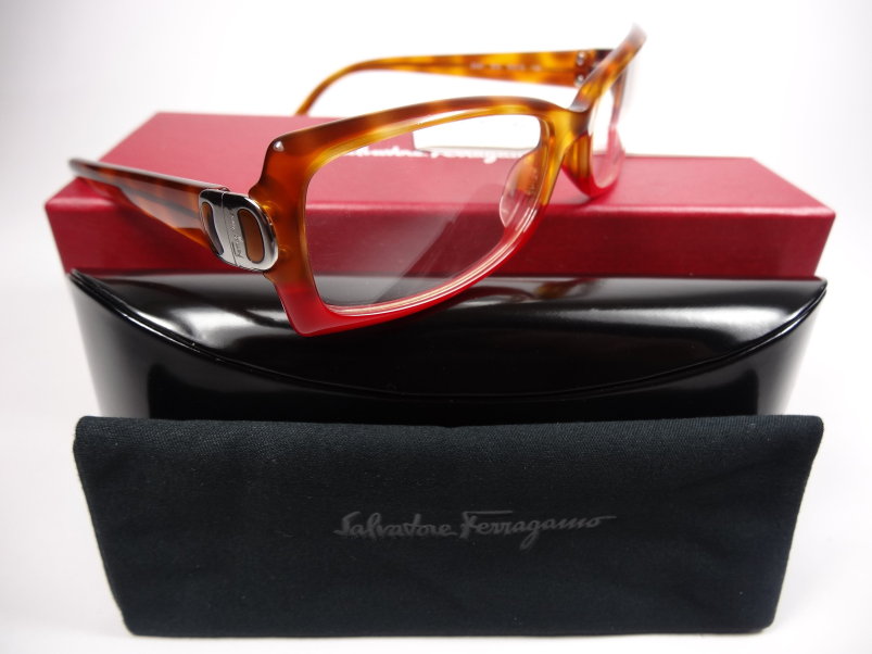 全新真品 Salvatore Ferragamo 費洛加蒙 光學眼鏡, 2597 義大利製 雙色漸層膠框金屬襯飾, 兩邊鏡架轉軸上都有Ferragamo字樣.