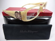 全新真品 Salvatore Ferragamo 費洛加蒙 光學眼鏡, 2644 義大利製 彈簧膠框 寬版, 兩邊鏡架上都有Ferragamo的字樣和金屬logo.