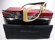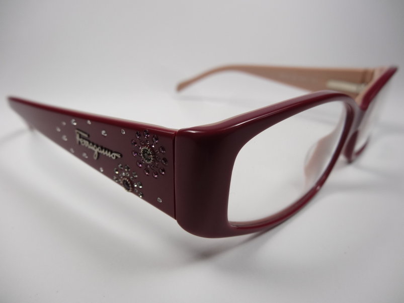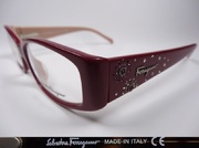 全新真品 Salvatore Ferragamo 費洛加蒙 光學眼鏡, 2645-B 義大利製 彈簧膠框 寬版, 兩邊鏡架上都有Ferragamo的金屬字樣和數顆水鑽, 閃耀動人.