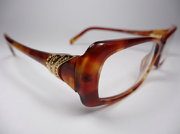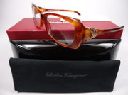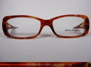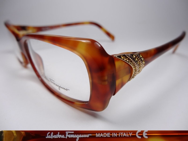 全新真品 Salvatore Ferragamo 費洛加蒙 光學眼鏡, 2650-B 義大利製 彈簧膠框方框, 兩邊鏡架上都有數顆水鑽和金屬Ferragamo的字樣.