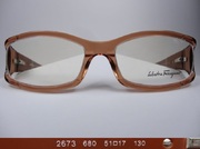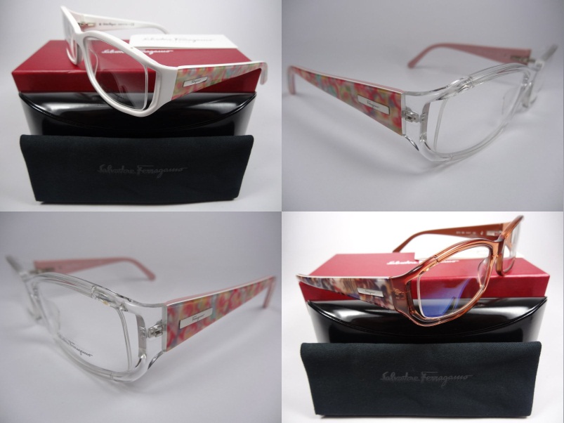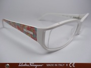 全新真品 Salvatore Ferragamo 費洛加蒙 光學眼鏡, 2673 義大利製 鏤空膠框橢圓框, 兩邊鏡架上都有金屬Ferragamo的字樣.