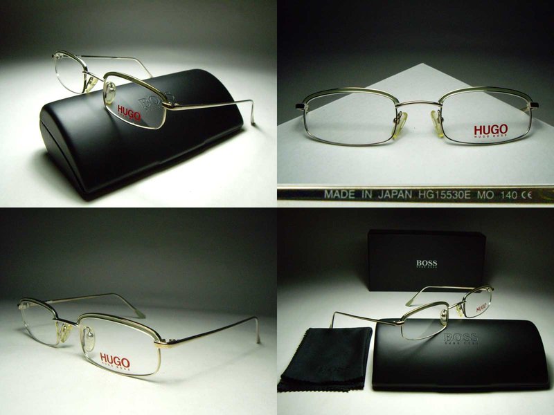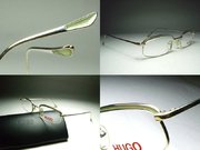 全新真品 HUGO BOSS 光學眼鏡, 日本製淡金色金屬框, 上框雙眉實心青玉色設計, 鏡架尾端有鏤刻 HUGO Logo 字樣, 時尚迷人, 品味非凡, 氣質出眾.