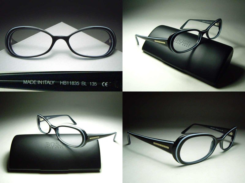 全新真品 HUGO BOSS 光學眼鏡, 義大利製膠框, 藍色線條襯托出黑色之深璲, 鏡架有 HUGO BOSS Logo, 品味復古.