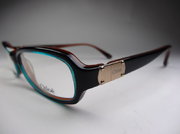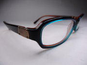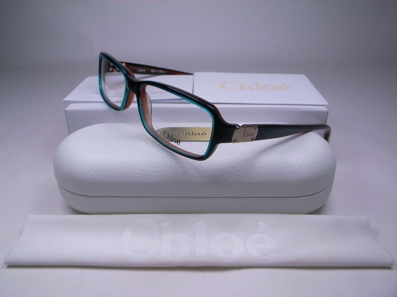 Chloe光學眼鏡, 法國製, 當季新款, 表層寶藍色, 底層深茶色, 變色膠框, 在不同角度下呈現不同光澤, 兩邊鏡框和鏡腳轉軸處都有金屬Chloe字樣, 亮麗有型.