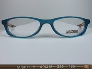 全新真品 MOSCHINO 光學眼鏡, M3611 義大利製, 膠框 橢圓框 彈簧鏡架, 鏡腳兩側都有MOSCHINO的字樣.