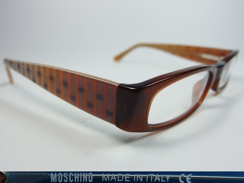 全新真品 MOSCHINO 光學眼鏡, M3640 義大利製, 膠框 橢圓框 彈簧鏡架, 漸層條紋鏡腳, 仔細看條紋是由 MOSCHINO 字樣所組成, 富巧思又有型.