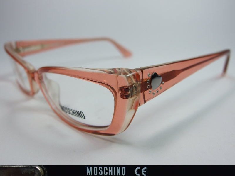 全新真品 MOSCHINO 光學眼鏡, M3692 義大利製, 膠框 貓型框 彈簧鏡架, 鏡腳一邊有心型金屬及水鑽點綴, 可愛有型.