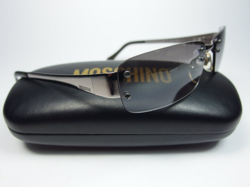 全新真品 MOSCHINO 太陽眼鏡, M3111 義大利製, 無框 方框 彈簧鏡架 金屬鏡腳, 兩側鏡腳轉軸處都有 MOSCHINO 的鏤刻, 時尚有型.