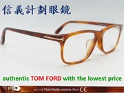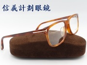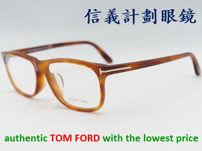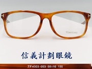全新真品 Tom Ford 光學眼鏡, TF 4303 義大利製 方框 品味膠框 亞洲版高鼻墊 蜜蠟色框, 兩邊鏡框轉軸處都有 T 字金屬條, 兩邊鏡腳都有金屬 Tom Ford 字樣, 時尚迷人