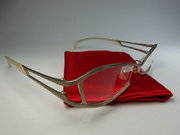 全新真品 ALEXANDER MCQUEEN MCQ 光學眼鏡, AMQ-5054J, 日本製 鈦金屬框 側無框, 一側鏡腳轉軸處金屬上有 ALEXANDER MCQUEEN的字樣, 鏤空鏡腳, 超輕有型.