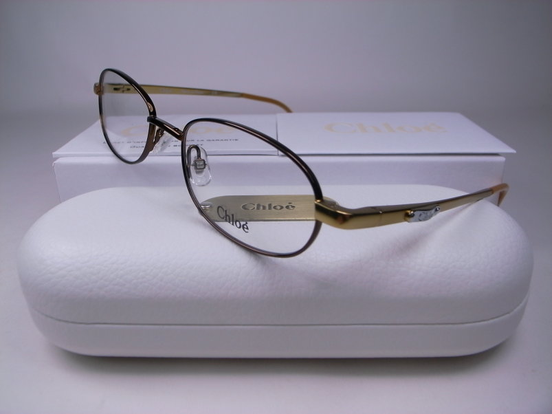 全新真品Chloe金屬方框, 法國製 , (A款: 亮咖啡色框面, 金色鏡腳, 銀色吊牌狀logo) 或
