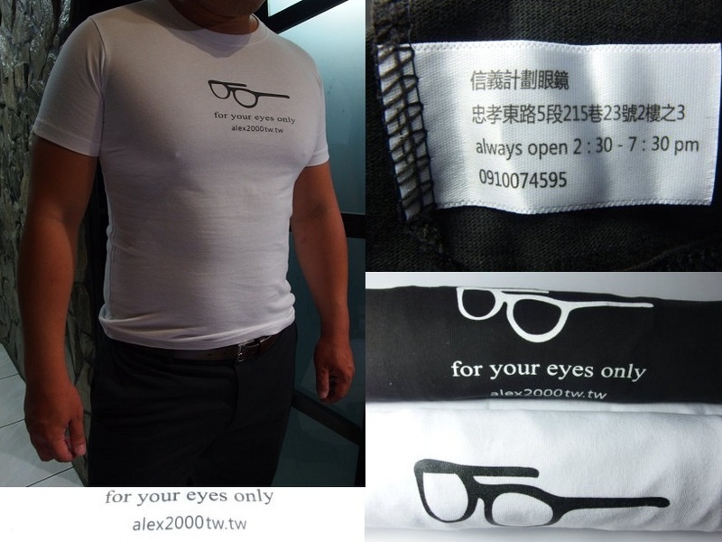 100% 純棉 台灣製 全新T shirt, 胸口印有我們的眼鏡logo, 男女皆適用