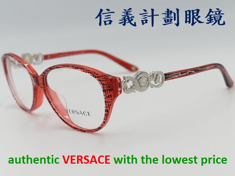 全新真品 VERSACE 凡賽斯 光學眼鏡, VE 3161-A, 義大利製, 膠框 圓框 , 鏡腳兩邊都有精緻的鏤刻, 精緻迷人.