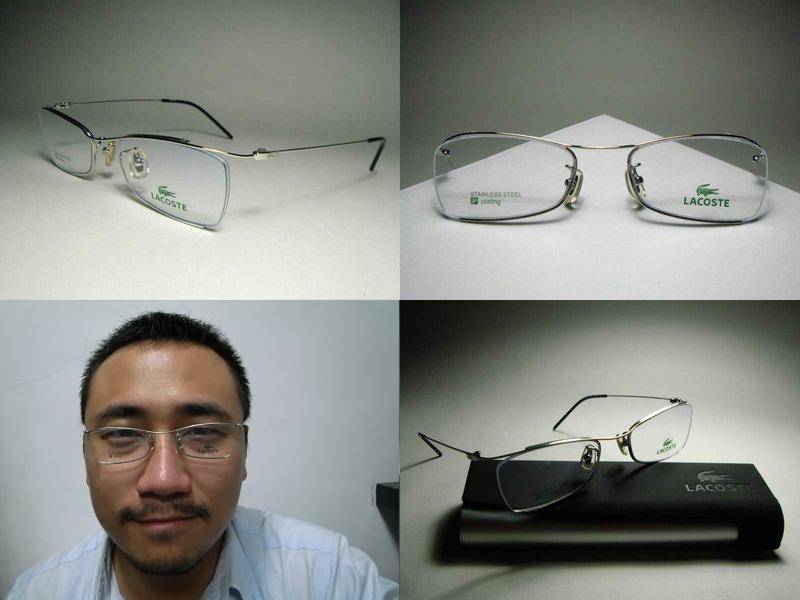 此副全新真品 LACOSTE 光學眼鏡, 銀色, 兩邊鏡架都有鱷魚的LOGO. 精緻迷人.