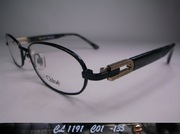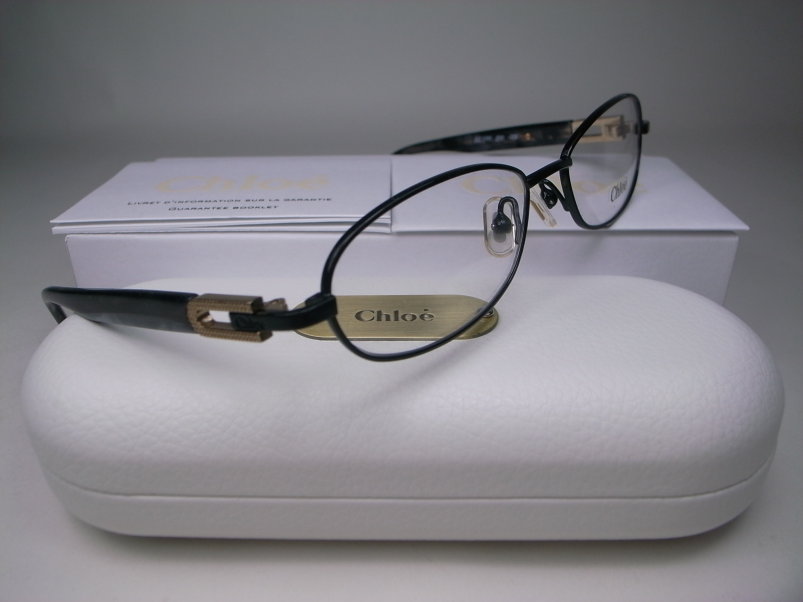 全新真品Chloe金屬橢圓框, 法國製 當季新款, 兩邊鏡框鏡架轉軸上都有Chloe字樣, 黑色鏡架當中有金色格紋的鏤空, 別緻動人.
