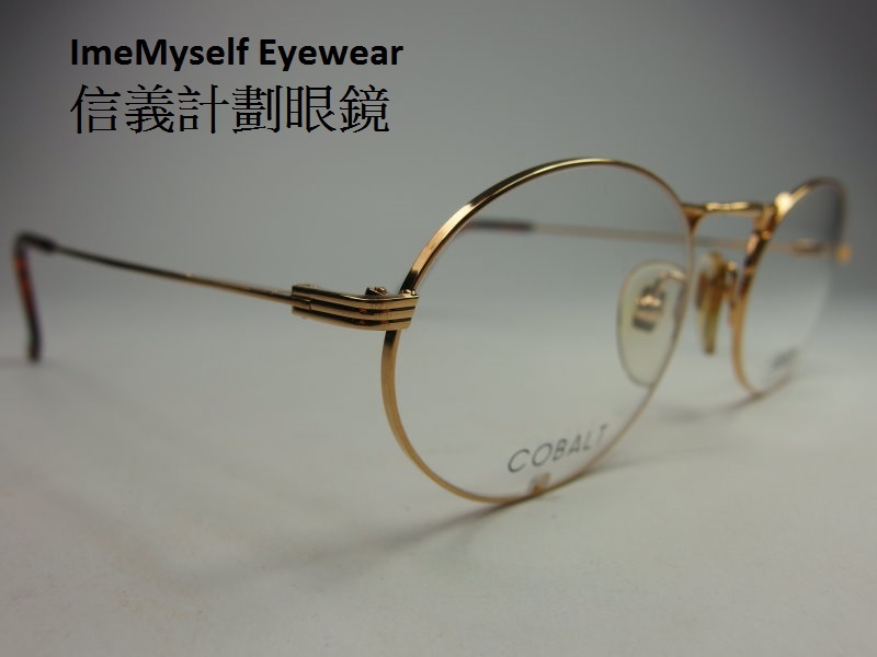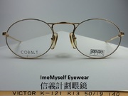 全新真品 KENZO 光學眼鏡, VICTOR K121, 法國 金色 COBALT 鈷金屬 超輕 金屬框 圓框 鏤空框, 鏡腳一旁有KENZO字樣的鏤刻, 復古有型.