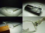 全新真品 Persol 光學眼鏡, 義大利製, 半透明方型膠框, 鏡架有金屬十字型 Persol 專屬品牌 Logo.二條金屬橫紋線不只是造型, 還具有彈簧的功能, 可適應不同的臉型.