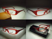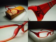 全新真品 Persol 光學眼鏡, 義大利製, 果凍紅色 方型膠框, 鏡架有二條金屬橫紋線造型.