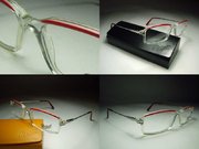 全新真品 Persol 光學眼鏡, 義大利製, 透明果凍紅色, 方型膠框, 金屬鏡架, 鏡架有十字造型Logo.