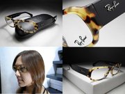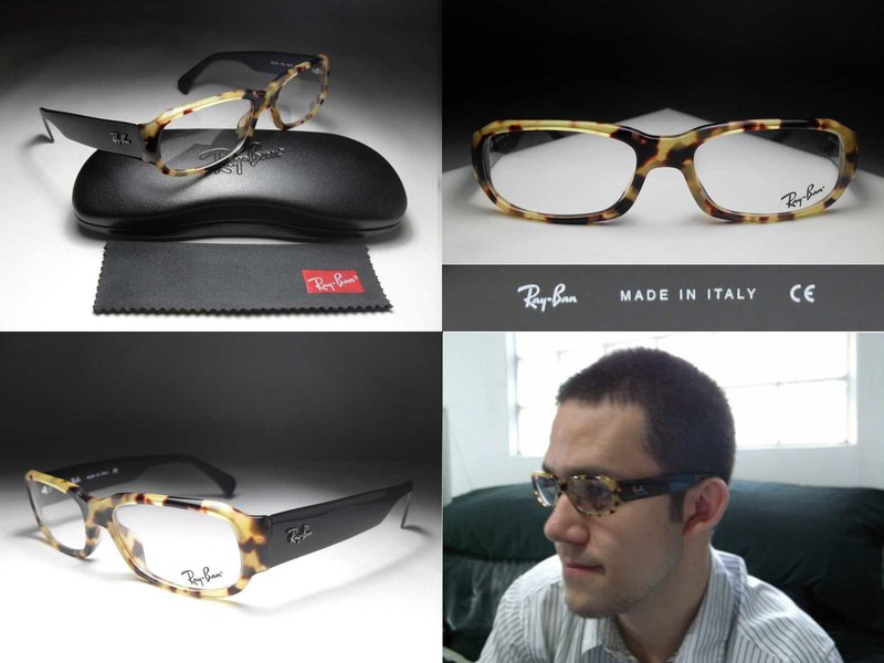 全新真品 Ray Ban 雷朋光學眼鏡, 義大利製豹紋大膠框, 黑色鏡架有立體浮雕 Ray Ban 字樣.