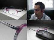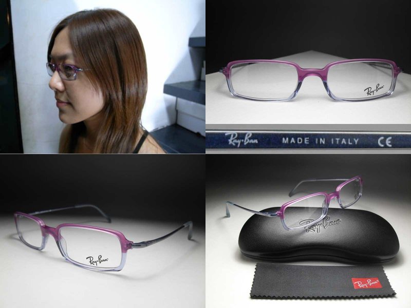 全新真品 Ray Ban 雷朋光學眼鏡, 義大利製粉紫色細膠框, 金屬彈性鏡架, 鏡架兩側有 Ray Ban 字樣.