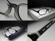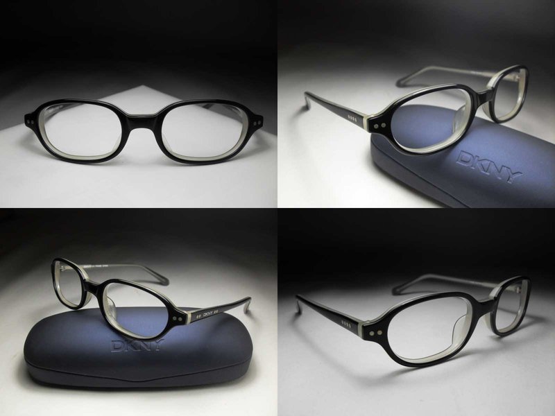 全新真品 DKNY 光學眼鏡空框 黑色霧白雙色膠框, 鏡架有鏤刻 DKNY 字樣.