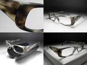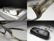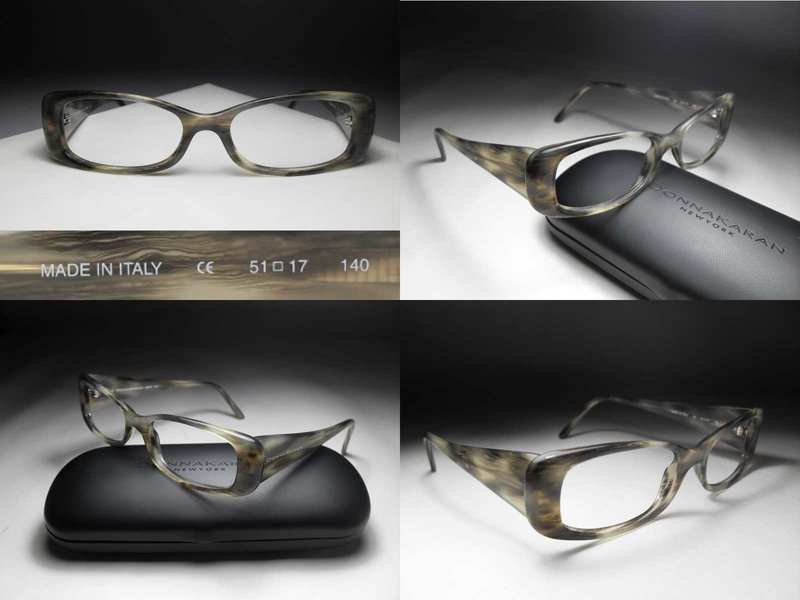 全新真品 DONNAKARAN 光學眼鏡空框, 義大利製牛角紋路膠框, 鏡架有 DONNAKARAN 字樣.