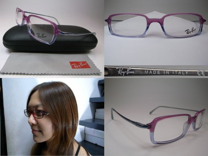 全新真品 Ray Ban 雷朋光學眼鏡, 義大利製細方框, 膠框金屬腳彈簧鏡架, 鏡架兩側有 Ray Ban 字樣.