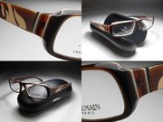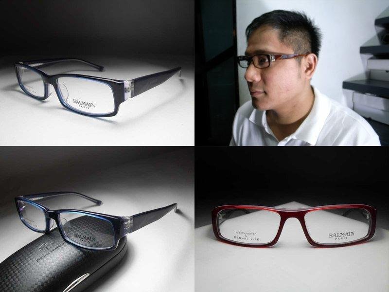 全新真品 BALMAIN 光學眼鏡, 法國巴黎都會休閒款, 咖啡色層次膠框, 鏡架有火舞圖案設計, 男女適用.