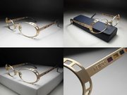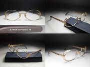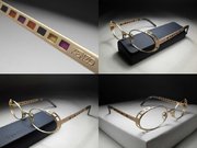 全新真品 KENZO 光學眼鏡空框, 法國製金黃色金屬框, 鏡架有立體浮雕 KENZO 字樣以及七彩飾框.