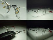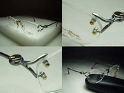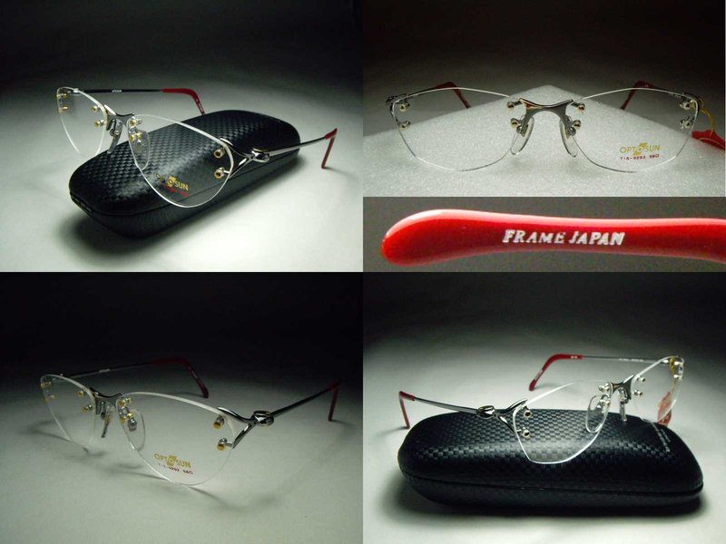 全新真品 OPTOSUN 光學眼鏡 日本製 銀色金屬無框款有金黃色襯飾, 日本名設計師所製作之高品質眼鏡, 原定價7900元, 我的賣場超低價1200直購.