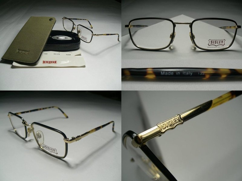 這款 SISLEY 眼鏡是義大利製眼鏡, 全新真品, 黑框滾金邊款, 復古典雅.