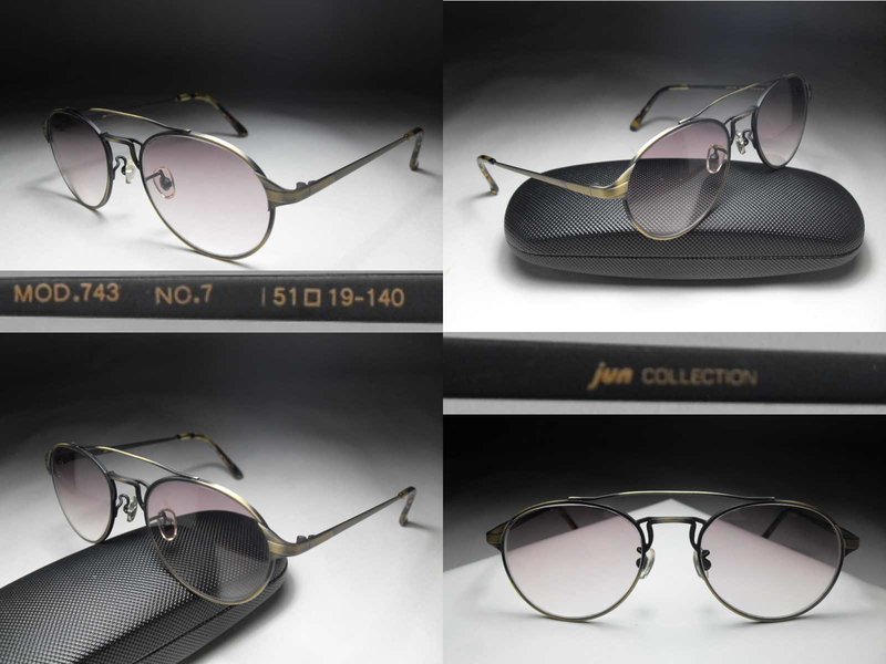 全新真品 jun 太陽眼鏡 古銅色金屬圓大框, 鏡架針織網狀鏤刻造型, 男女適用.