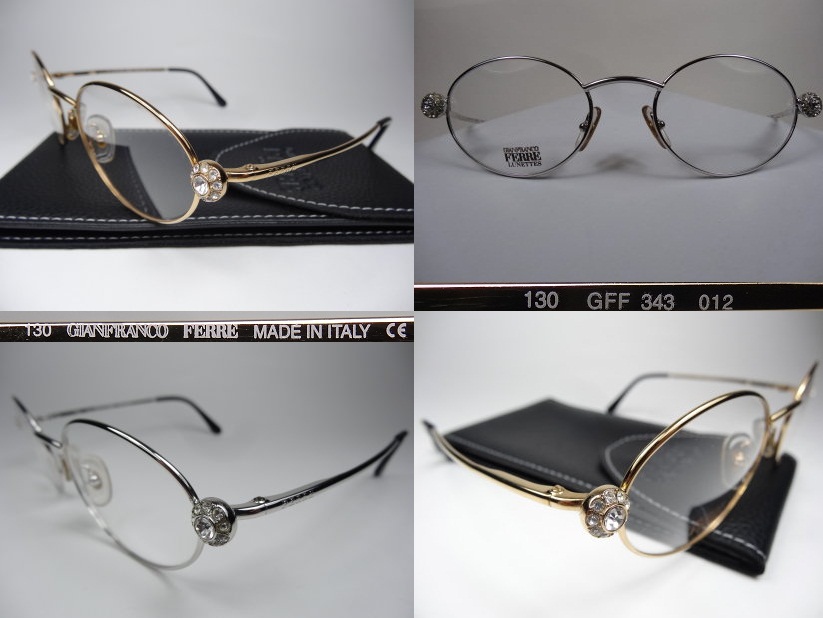 絕版全新真品 GIANFRANCO FERRE 眼鏡, 義大利製, GFF 343, 水鑽金屬圓框, 兩邊鏡腳都是流線彈簧設計, 精緻迷人.