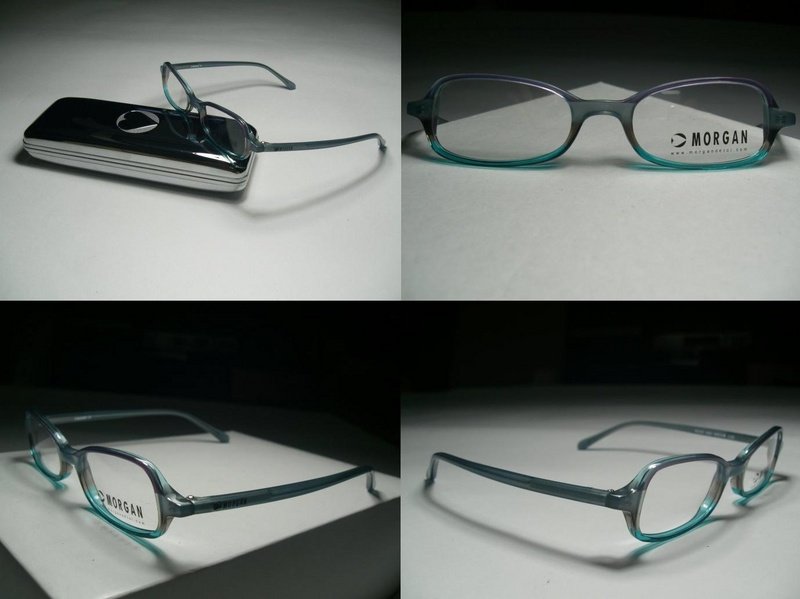 全新真品 Morgan 光學眼鏡, 紫色和青色交織而成的鏡框, 在一片黑色框的人群中顯得很特別, 表現出自己好看的色彩. 男女皆適用