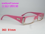 眼鏡還有米黃色瑪瑙紋(352) 49mm, 上粉下透明(363) 51mm和 紅色格紋(316)53mm 三種顏色,