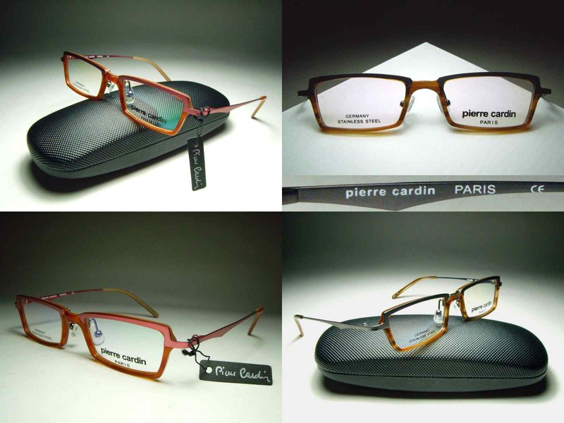 全新真品 pierre cardin 眼鏡, 金屬半框鏡架加上斑點條紋膠框, 時尚迷人, 品味非凡, 和 Salvadore Ferragamo, DonnaKaran, DKNY, Jean Paul, BOSS, CHARRIOL. LOEWE, FILA, ICEBERG 眼鏡屬於同一集團, 是純正公司貨, 絕非一般水貨或贗品所能比擬.