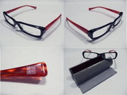 這付眼鏡非常出色, 一方面黑色鏡框感覺很冷靜, 另一方面瑰麗紅色鏡架透著迷人色彩和紋路, 戴上去讓人散發出冷靜卻又性感的魅力, 是設計師或職場人士不可錯過的好眼鏡.