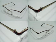 這件 FERRE 鏡架, 義大利製, 兩邊鏡架上面都有金色FERRE的LOGO. 玫瑰色框搭配金色鏡架, 尊榮典雅, 高貴迷人.