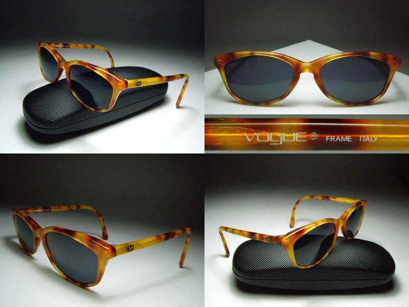 全新真品 VOGUE 太陽眼鏡, 義大利製, 黃色蜜蠟膠框款式, 貓女造型, 鏡架有低調 V Logo, 品味非凡.