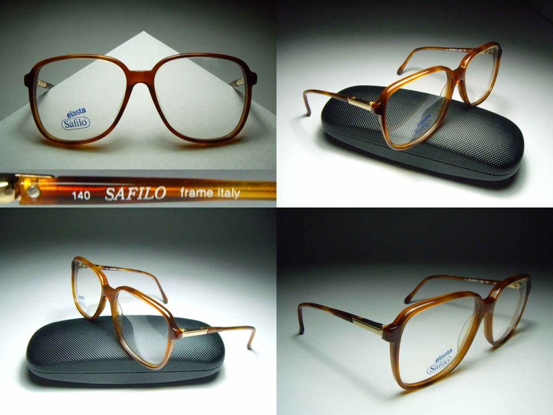 沒有使用過的真品 SAFILO 光學眼鏡, 義大利製大型膠框, 鏡框與鏡架間以質感金屬相連, 就是會令人多看一眼.